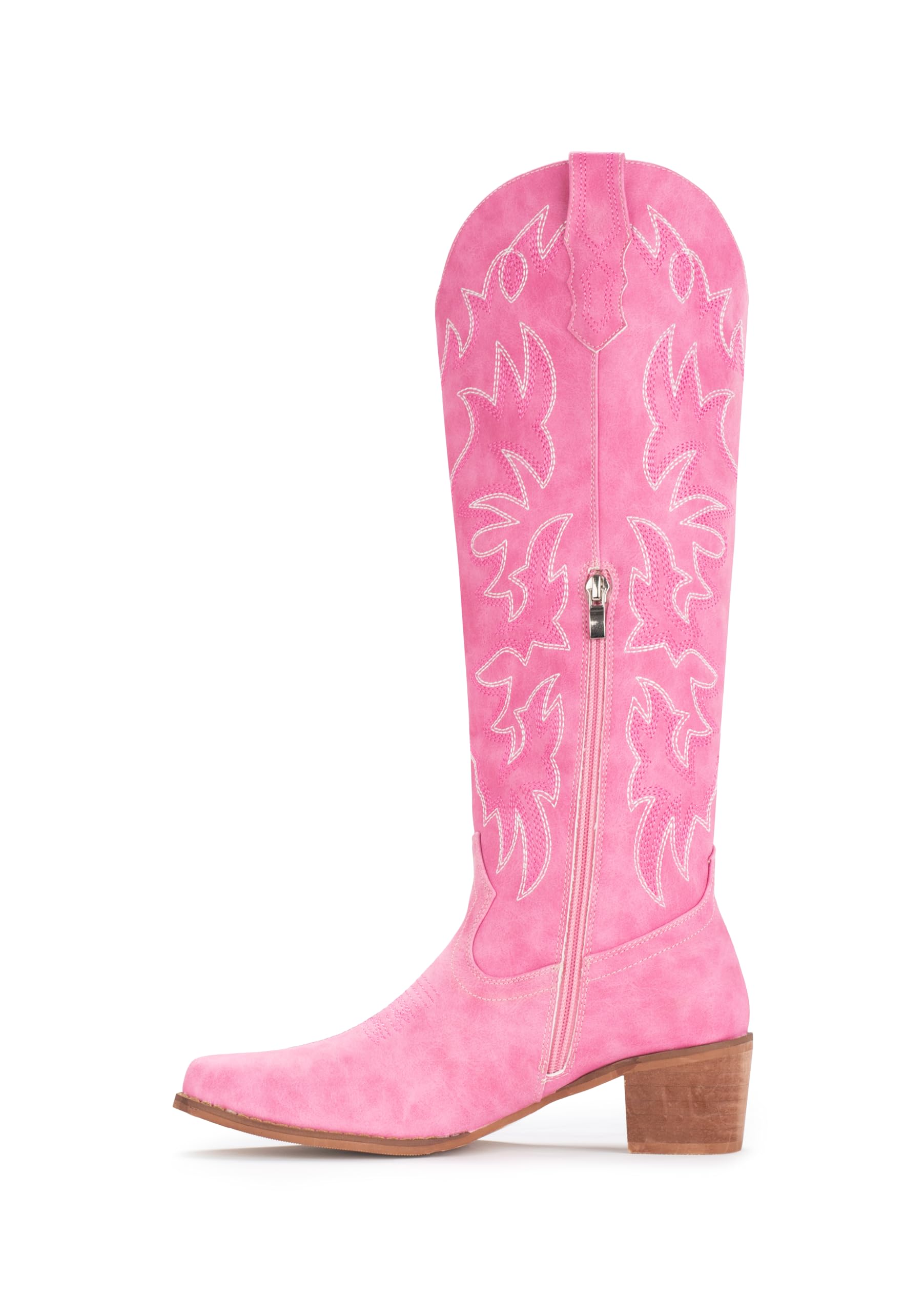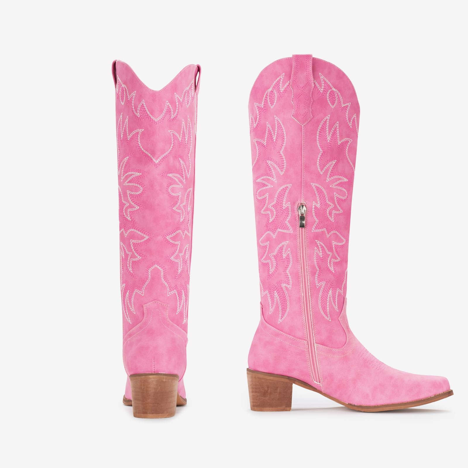 IUV Cowboy Boots For Women Knee High Western Cowgirl Boots Snip Toe Side Zipper Chunky Heel