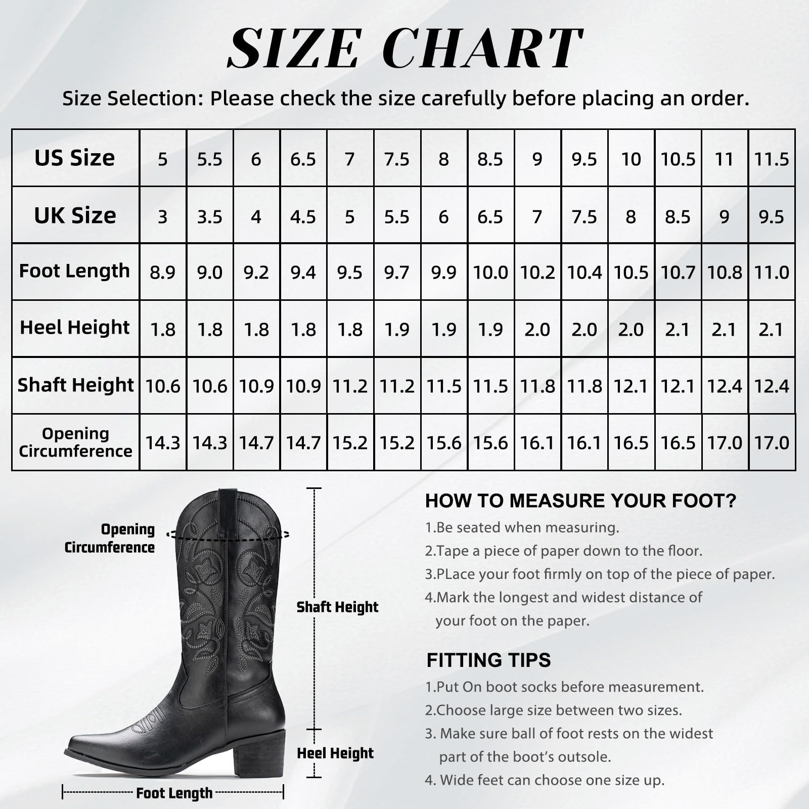 - 【Cowgirl Boots Style】:The 2.0 inches western wooden heel and classic western embroidery design showcase a classic but elegant western style.